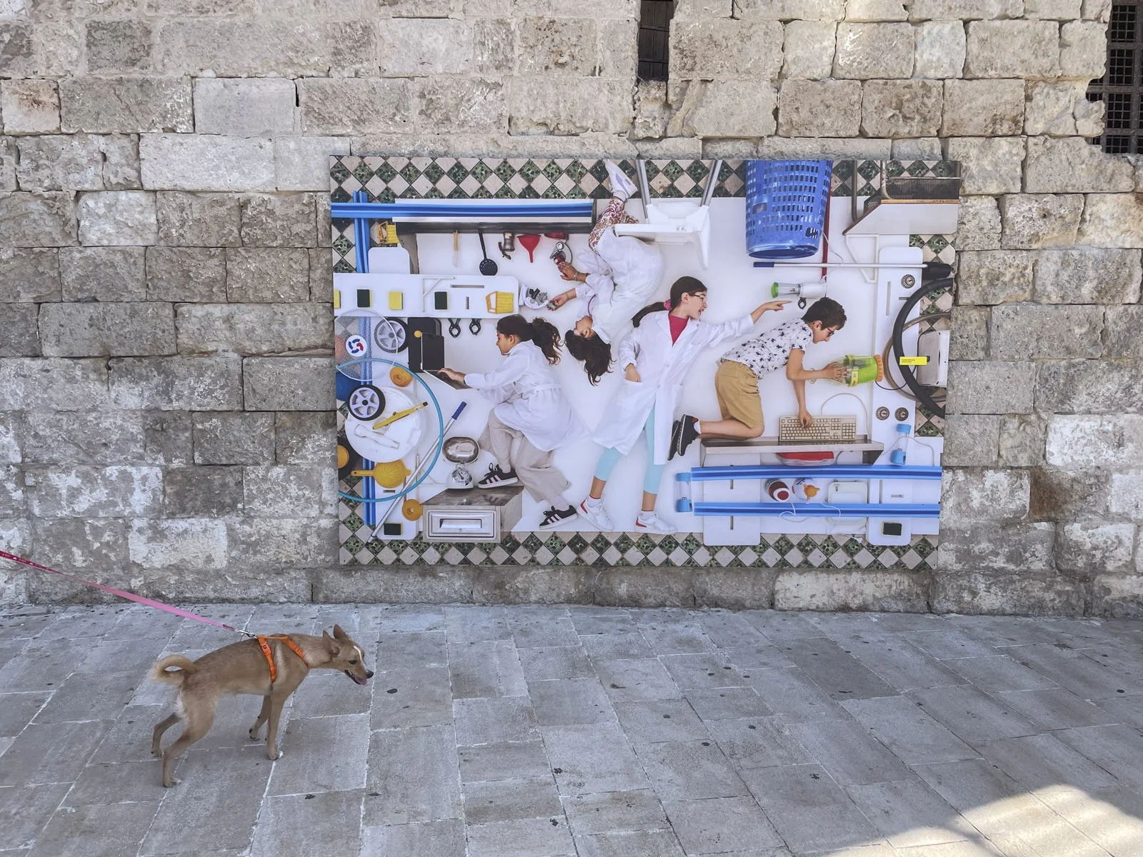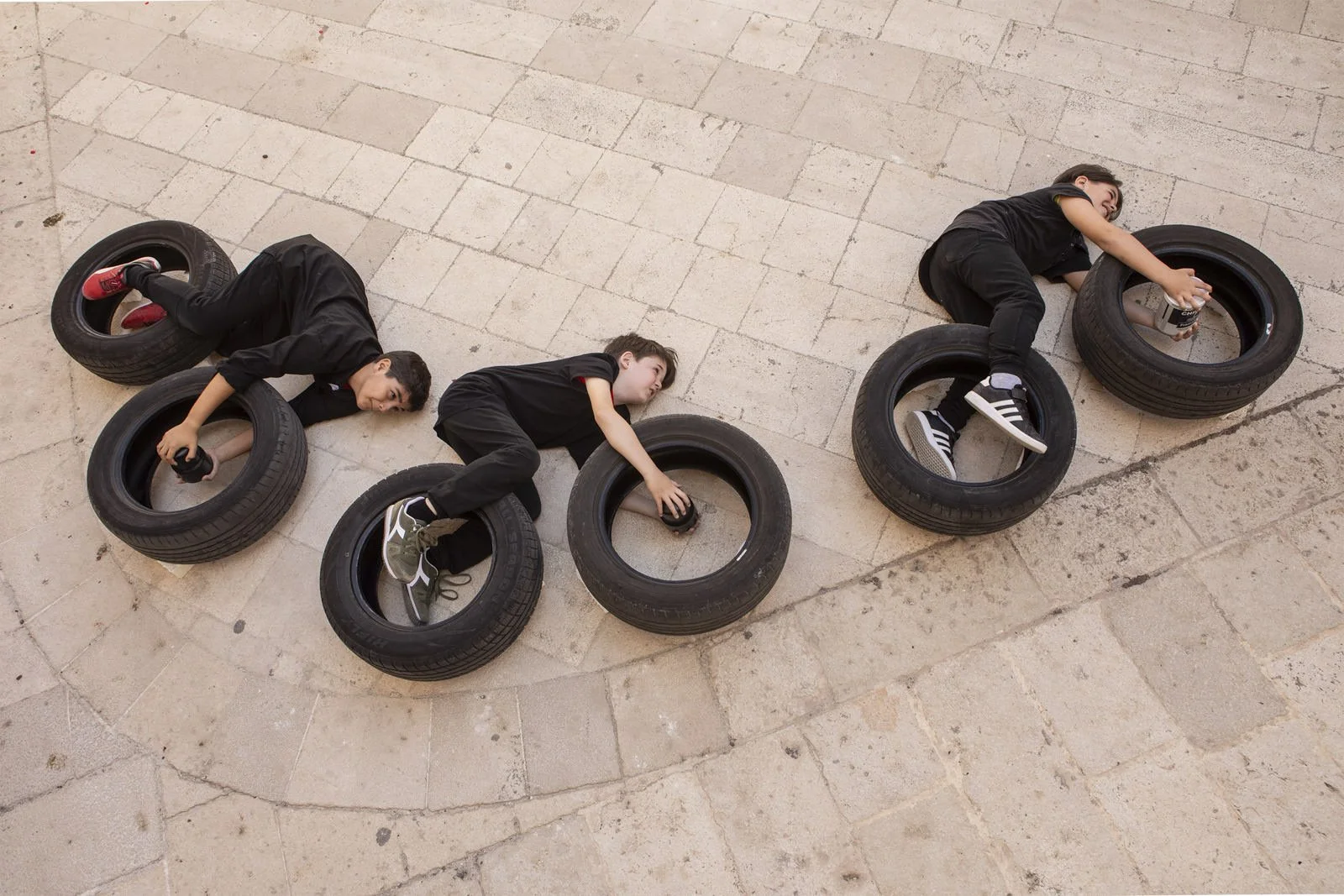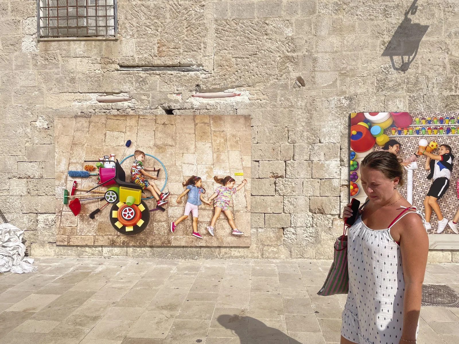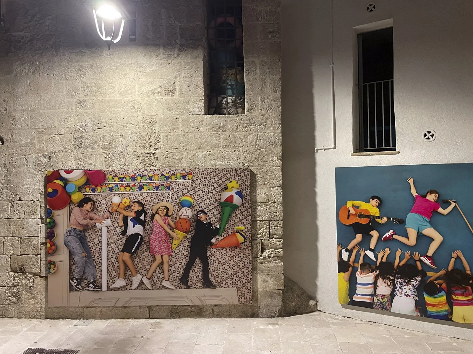 This project was realised as an artist residency in Monopoli involving 800 primary school children in four comprehensive schools in the city. The children were asked to describe and draw one of their dreams for their own future. We translated a wide selection of these dreams into photographic images with the participation of about 100 children. The resulting pictures were exhibited at Porto Vecchio in Monopoli for the duration of the festival. The children's drawings were exhibited at the Palazzio Palmieri in Monopoli.